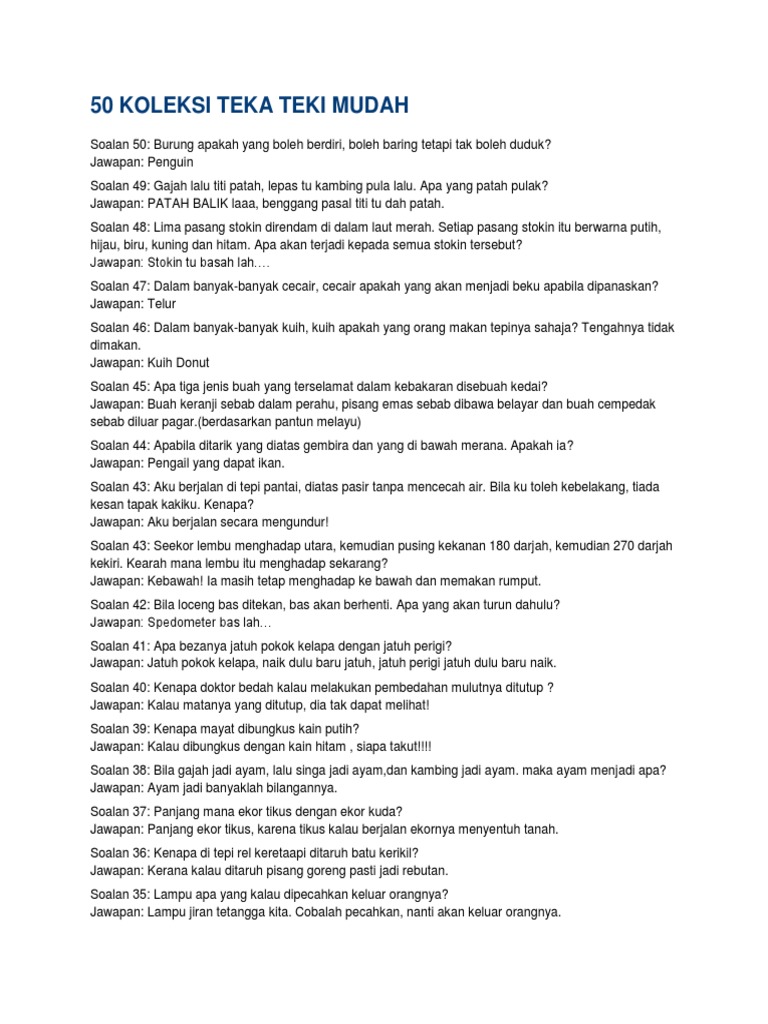 Soalan Teka Teki Bodoh. Bodoh betul la teka teki ni. Di sini kita mempunyai koleksi 100 soalan teka teki.